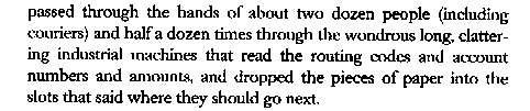 p. 250-251: How checks are transferred in 1974 in Amerika (and maybe still??)